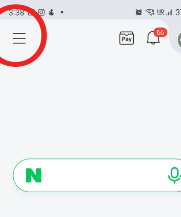 먼저 네이버를 눌러 열어 주시고, 네이버 어플 상단의 왼쪽, 줄 3개 탭을 눌러주세요.