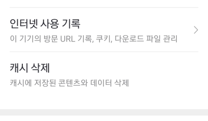 인터넷 사용기록을 눌러서 방문기록과 쿠키 등을 하나씩 눌러서 모두 삭제해 주세요.