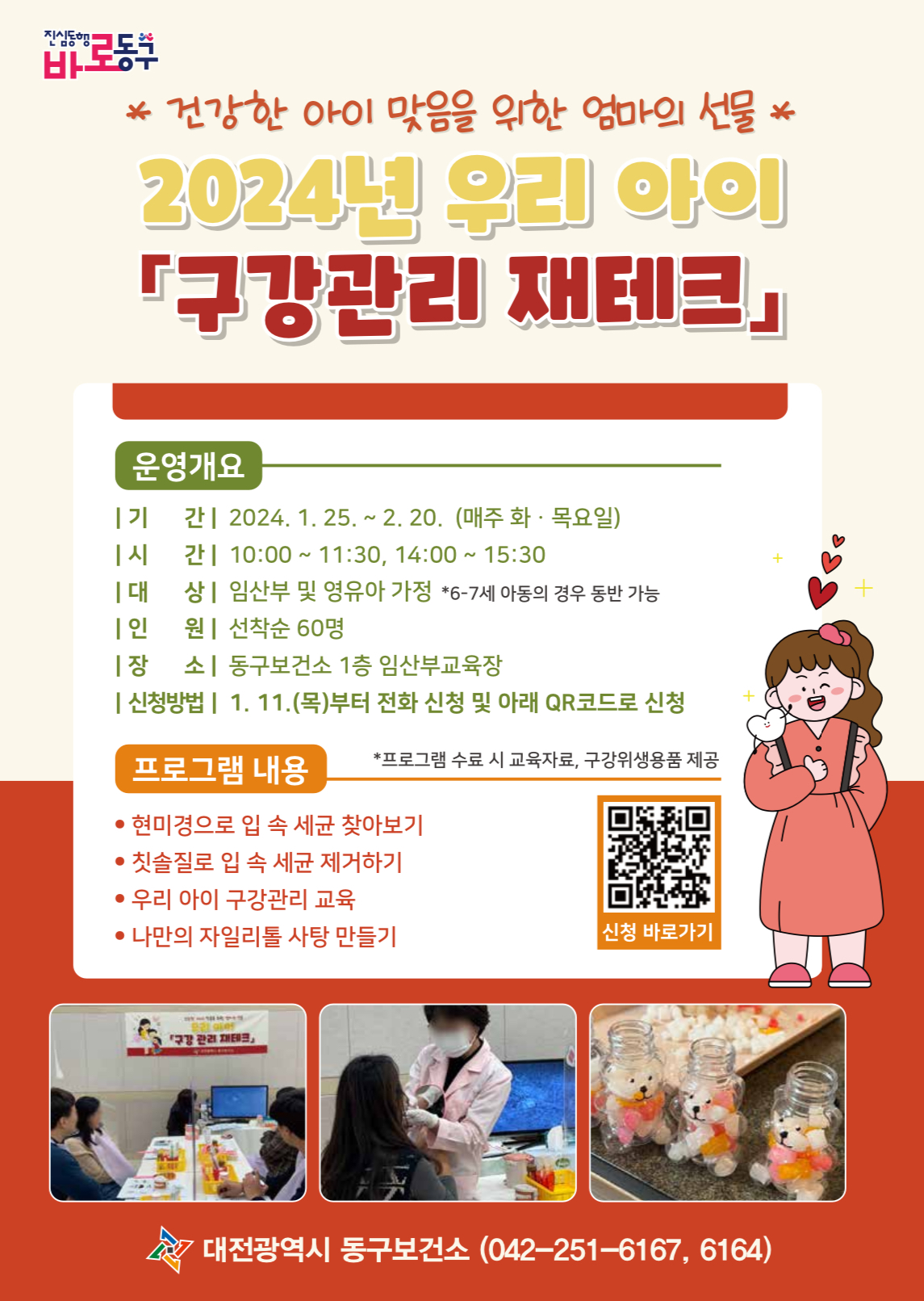 임산부 및 영유아 가정의 구강관리 능력 향상을 위한 2024년 우리 아이 『구강관리 재테크』 사업을 운영하오니,
