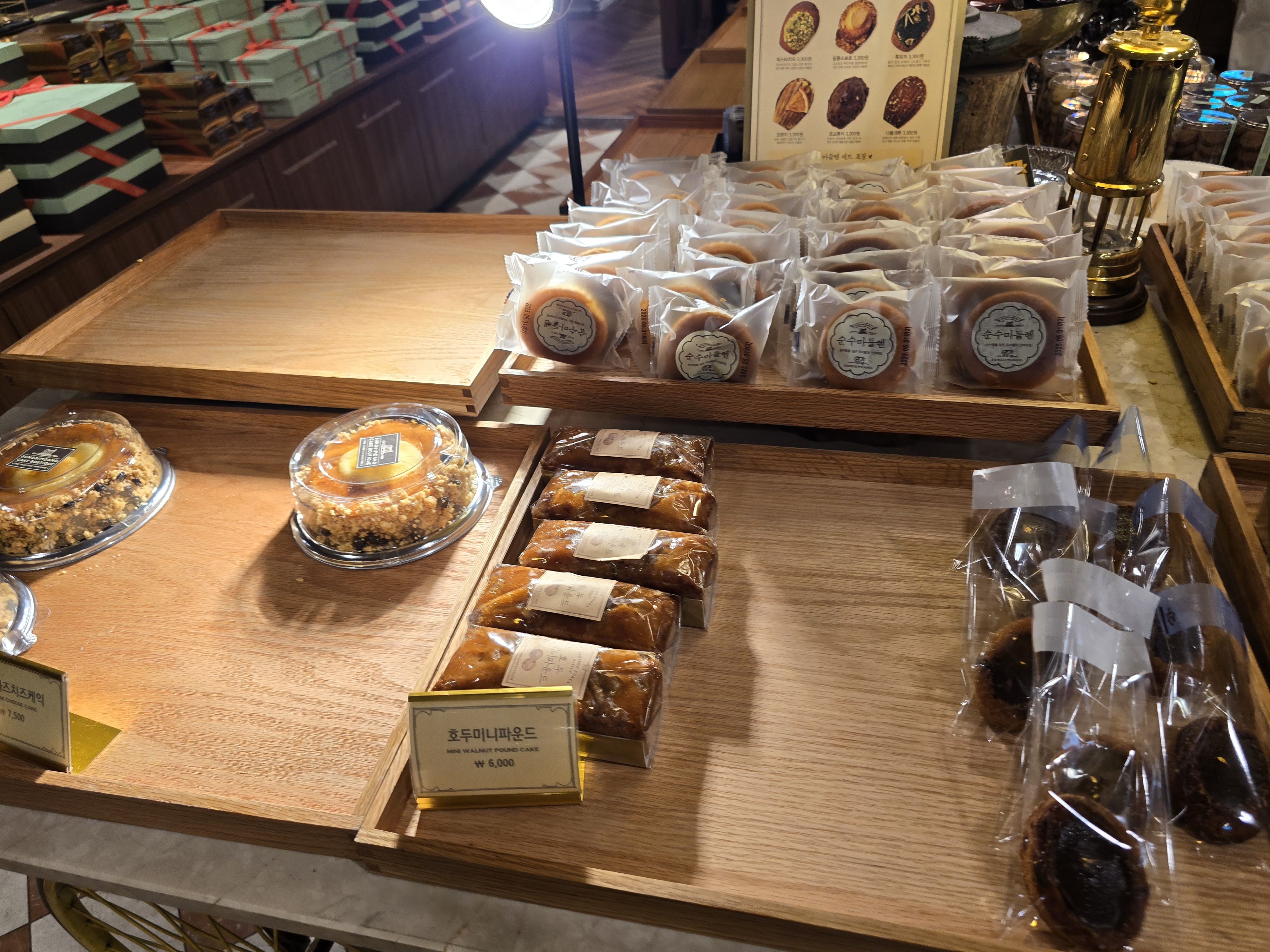 매장은 기존 성심당 빵코너와는 완전히 분리된 독립된 공간으로, 프리미엄 디저트샵이라는 정체성이 느껴지도록 인테리어도 차분하고 고급스럽게 꾸며져 있었어요. 유리 진열장 안에는 크고 작은 케이크들이 예술작품처럼 전시되어 있었고, 디스플레이 하나하나에서 정성이 묻어났어요. 무엇보다 조명과 케이크의 색감 조화가 정말 예뻐서 사진 찍기에도 딱 좋았어요.