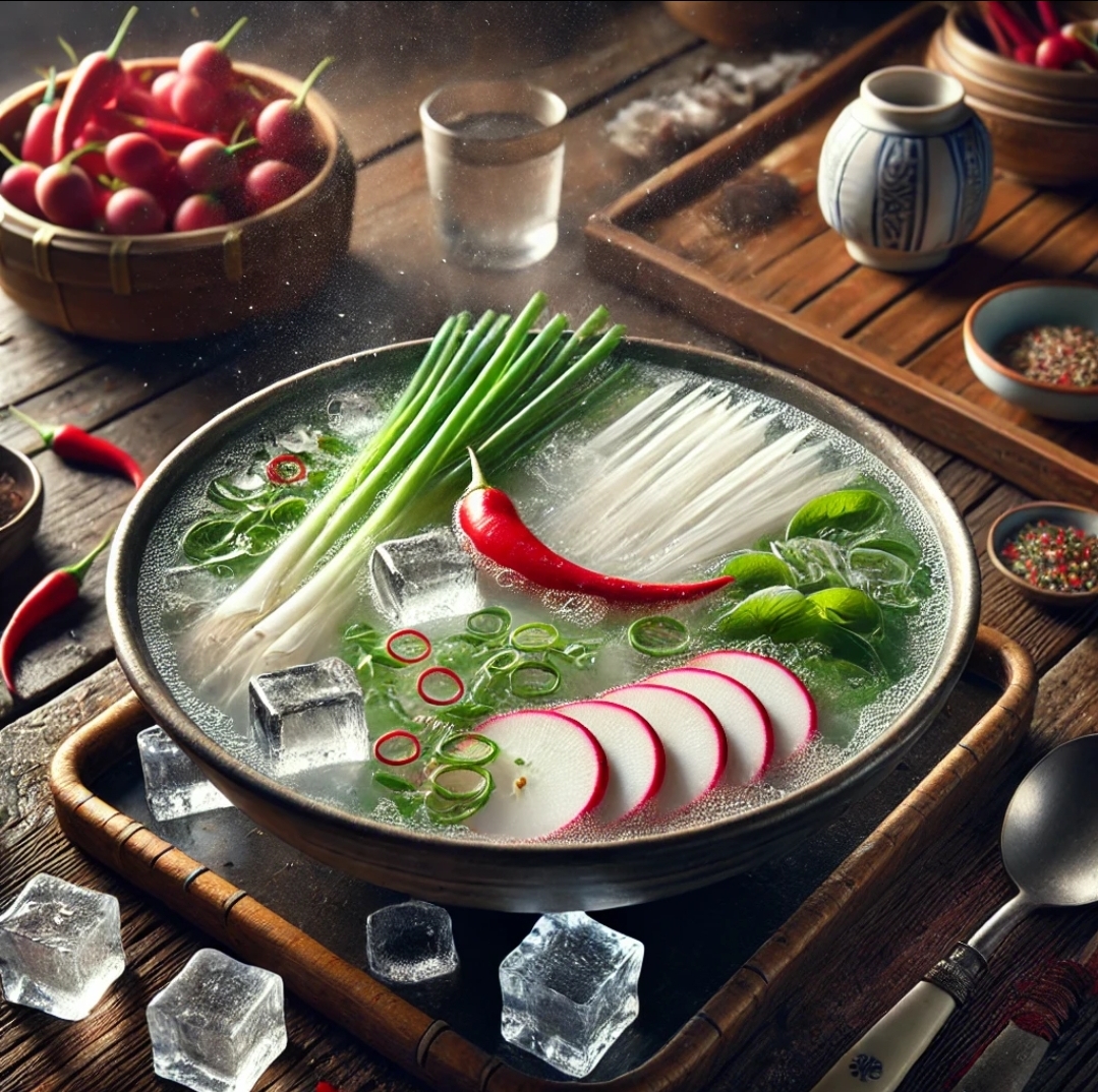 동치미는 한국의 전통 발효 음식으로, 주로 겨울철에 즐겨 먹는 시원하고 상쾌한 국물 요리입니다.