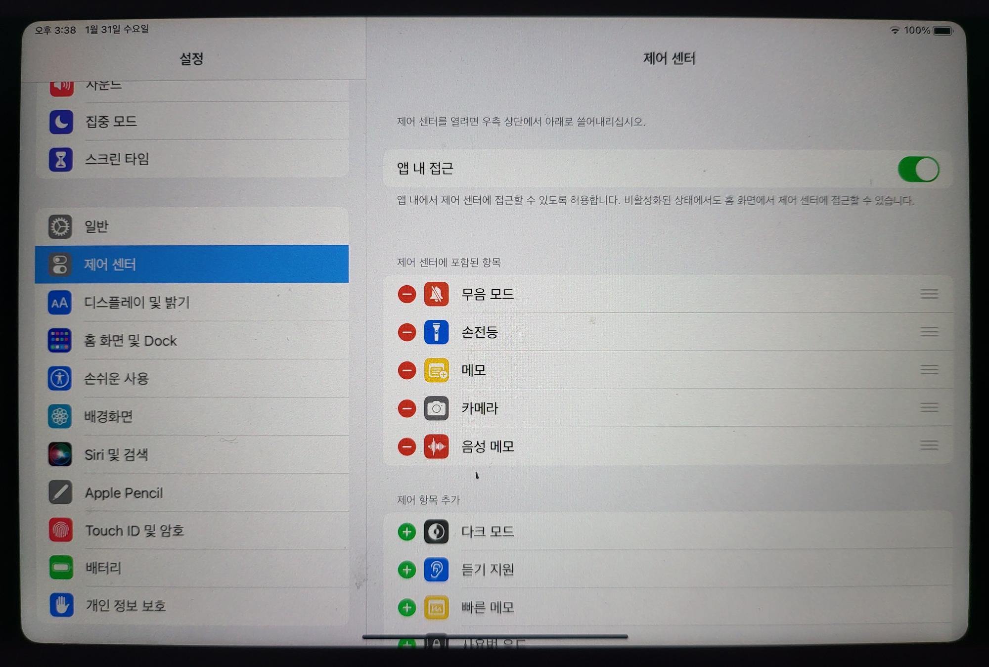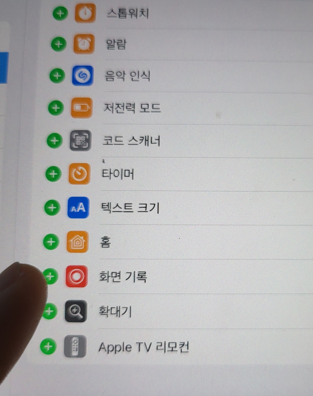 '화면 기록' 옆에 있는 추가 버튼을 눌러주면 상단 모음에 추가되어집니다.