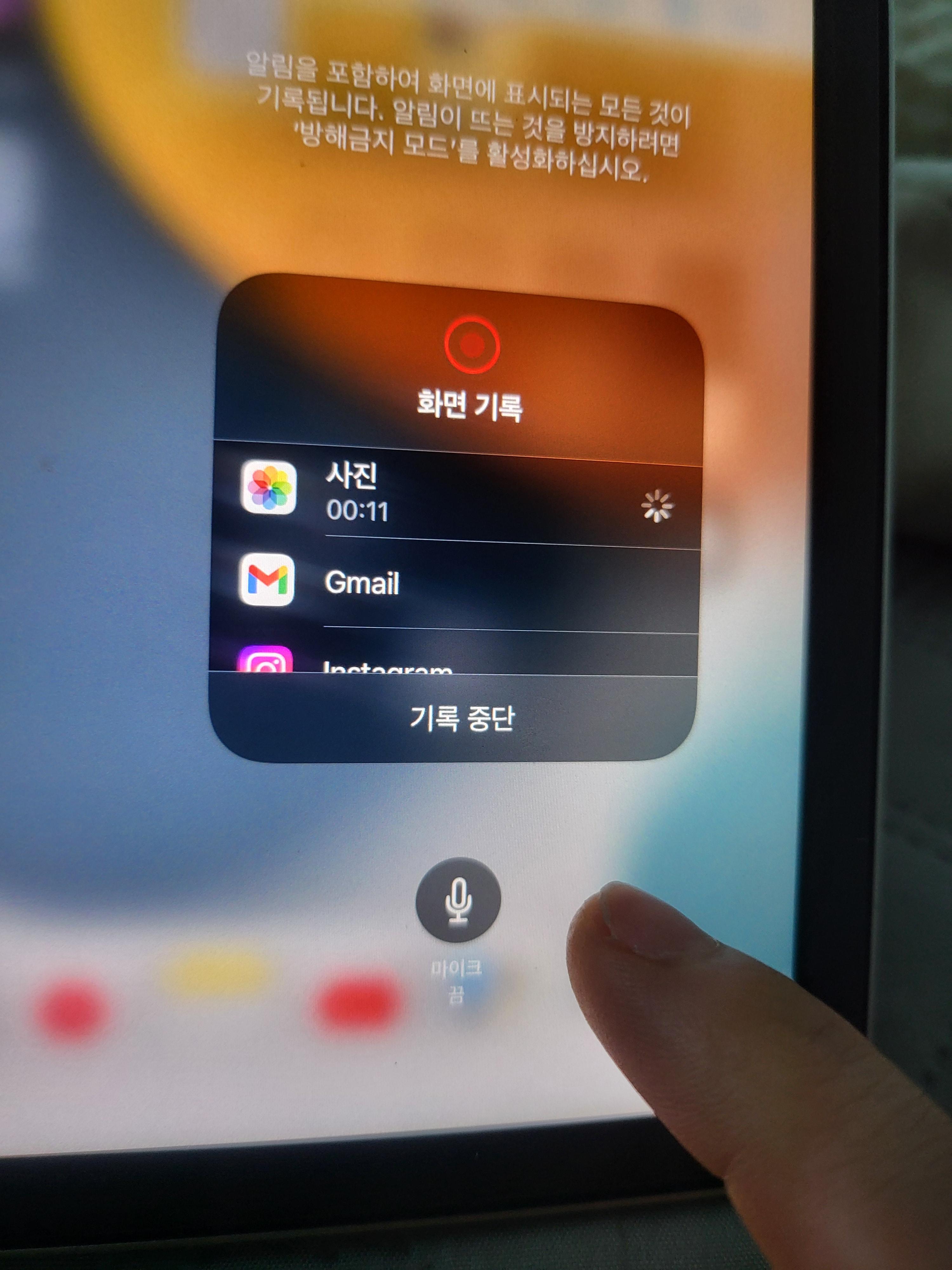 상단에 탭을 내리면, 거의 화면 녹화 기능이 추가되지 않아 있는데요.