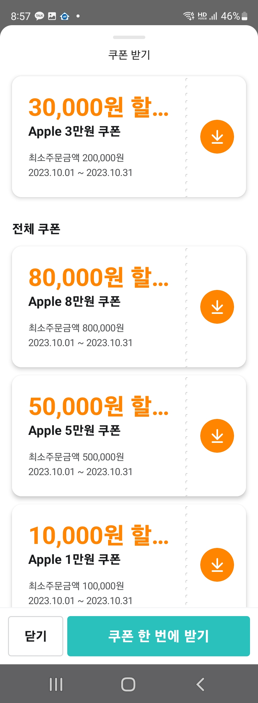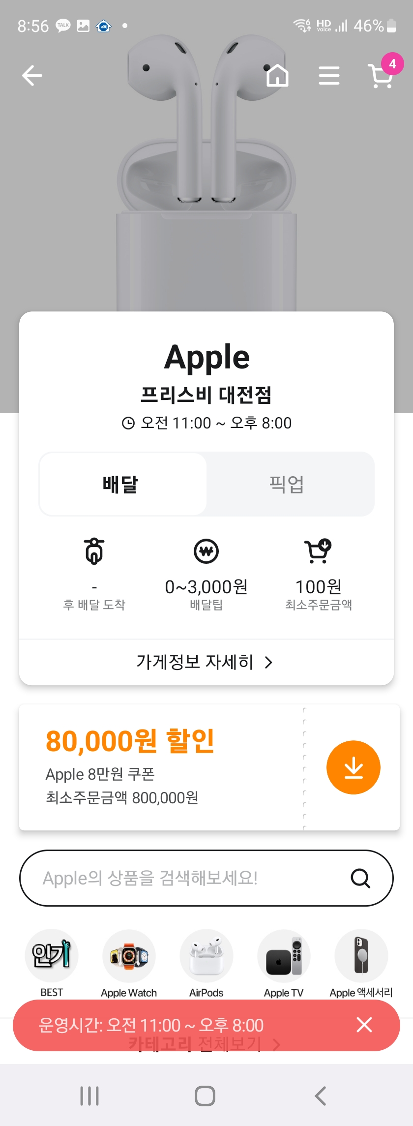 1~8만원 사용(픽업, 배송)