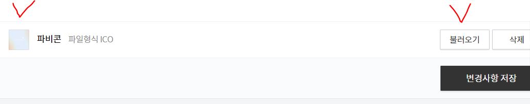 파비콘이라고 부르는 아이콘이미지를 등록할 때는 ICO로 변환해서 ICO 이미지를 등록해 주시면 됩니다.