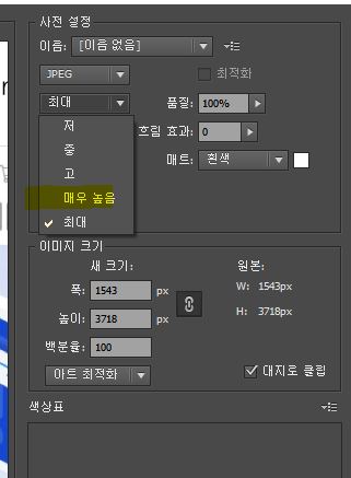 용량 사이즈는 보통 최댓값보다는, 매우 높음 값인 80% 정도가 인터넷에 올렸을 때, 로딩이 빠르게 되기 때문에 필요한 용량을 설정을 해서 탭을 눌러주세요.