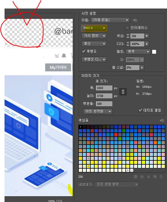 하지만 파일이 무겁다는 단점이 있고, 일러스트에서 그냥 저장하면, PC와 스마트폰에서 간혹 이미지 뒷부분이 검은색으로 처리되어 보이거나, 체크 바둑판처럼 보이기도 합니다.